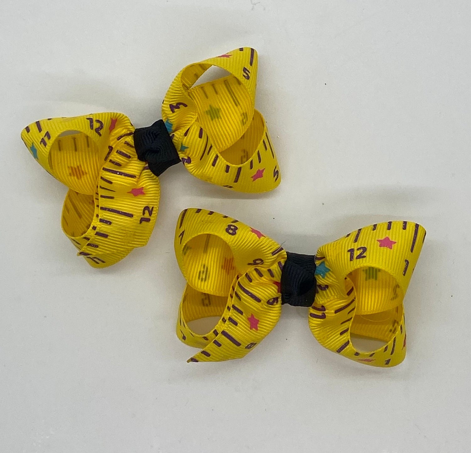 This Piggy is a miniature version of the classic double. It measures around 3 inches. This bow has 2 parts to it, the bottom and top bow. Glitter tails can be added but are subject to availability and color. These can also be created in solids or with patterns.